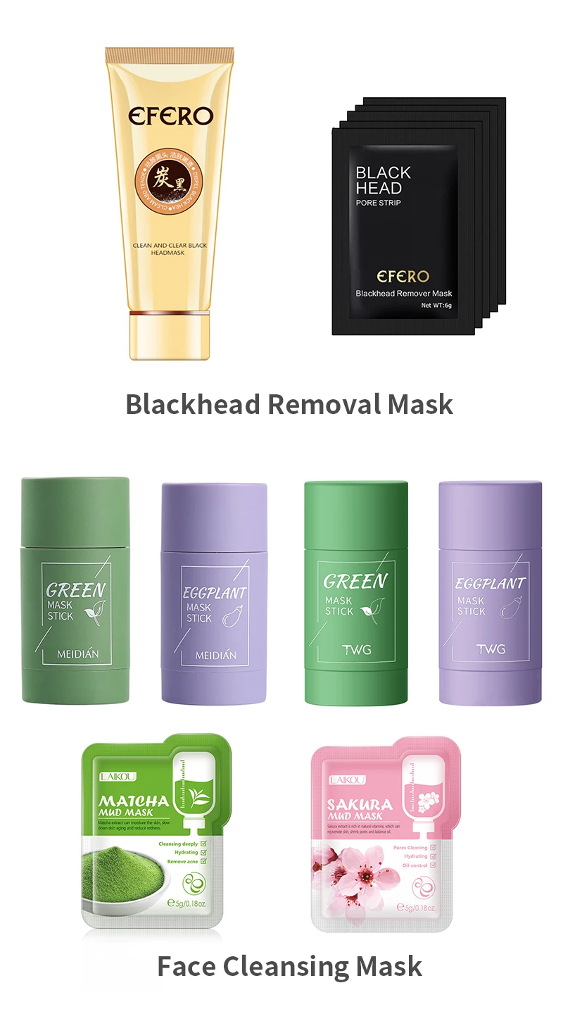 Limpeza profunda máscara facial chá verde controle de óleo berinjela remover máscara cravo vara hidratante anti-acne encolher poros cuidados com a pele